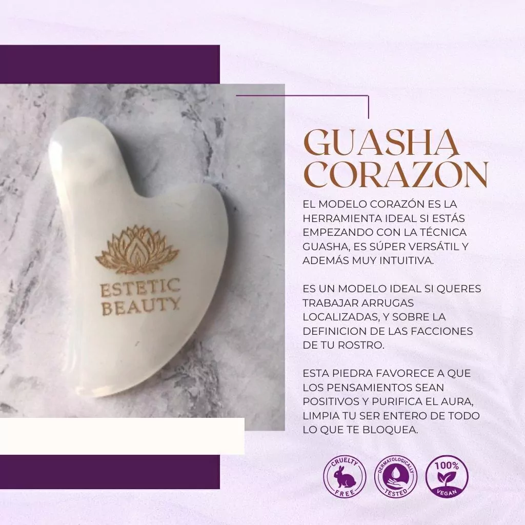 El modelo CORAZÓN es la herramienta ideal si estás empezando con la técnica Guasha, es súper versátil y además muy intuitiva. La temperatura de la piedra favorece la vasoconstricción de los poros. El masaje promueve la circulación de la sangre y el drenaje linfático, eliminando, de esta manera, toxinas y líquidos acumulados en el rostro.